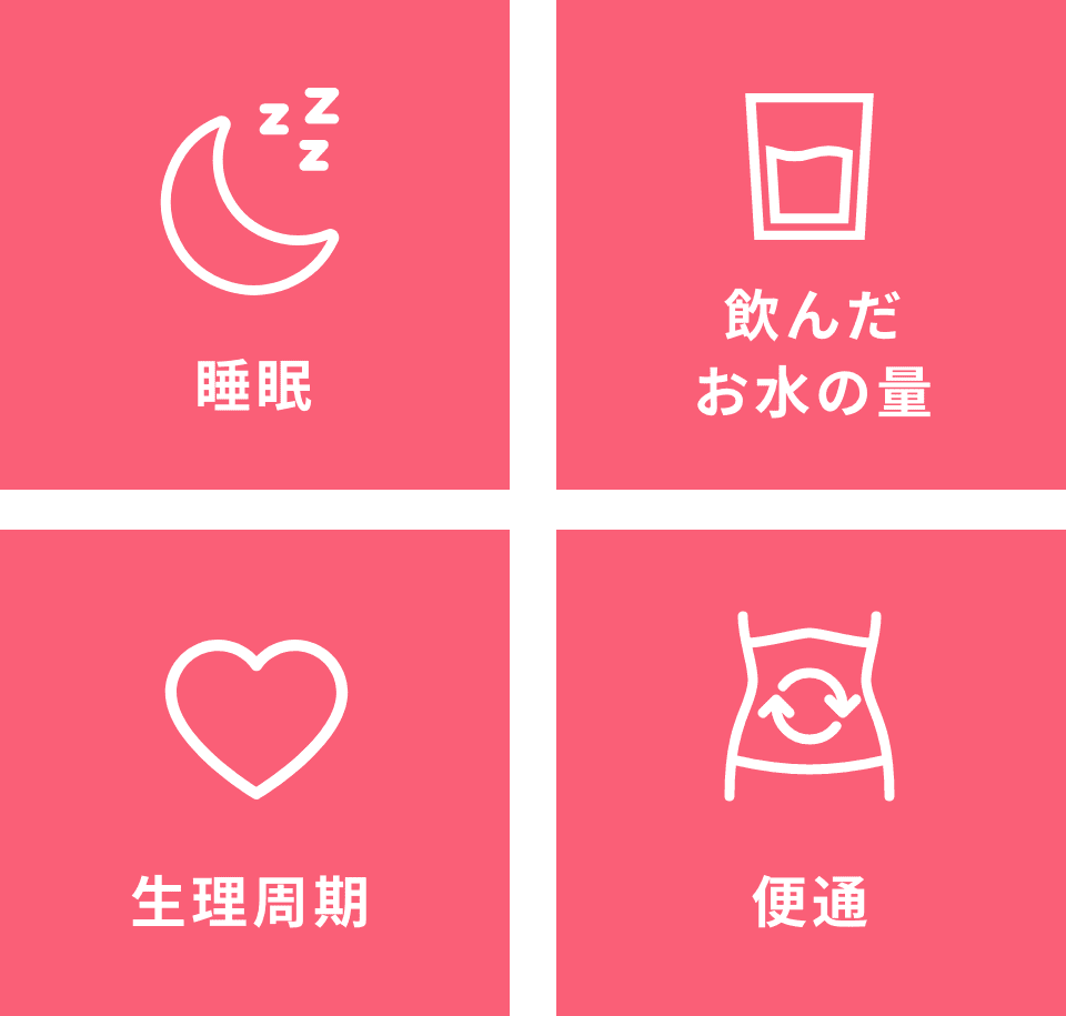 睡眠・飲んだお水の量・生理周期などを管理し、腸マッサージで体質から改善します。